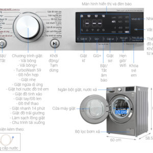 Chiếc máy giặt LG cửa trước này được tích hợp 14 chương trình giặt khác nhau (xem chi tiết tại bảng thông số kỹ thuật), bao gồm: chu trình tải về, giặt chăn ga, giặt hơi nước đồ trẻ em, giặt ngừa dị ứng, giặt nhanh 30 phút, giặt nhẹ, giặt tay + đồ len, giặt tiết kiệm cotton, và 6 chương trình giặt khác.