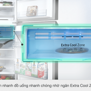 Sản phẩm có ngăn Extra Cool Zone với nhiệt độ là 2°C giúp trữ lạnh thực phẩm nhanh và bạn có thể thưởng thức nhanh các đồ uống mát lạnh mà không tốn thời gian chờ đợi. Ngăn được thiết kế dạng kéo, có nắp kháng khuẩn đảm bảo các vi khuẩn không xâm nhập vào bên trong ảnh hướng đến độ ngon của thức uống.